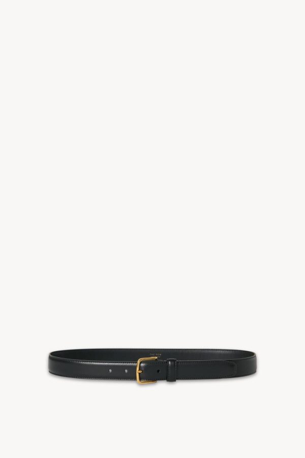 Slim belt in smooth calfskin leather with metal buckle and fixed loop.