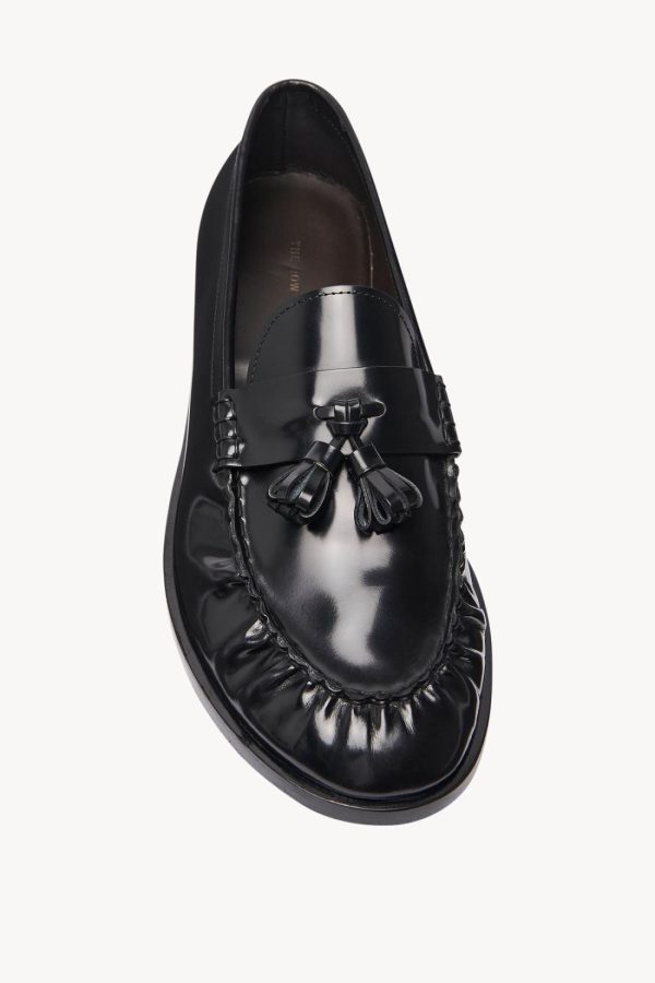 Artisanally-crafted loafer in polished calfskin leather with natural pleating effect and tassel detailing.