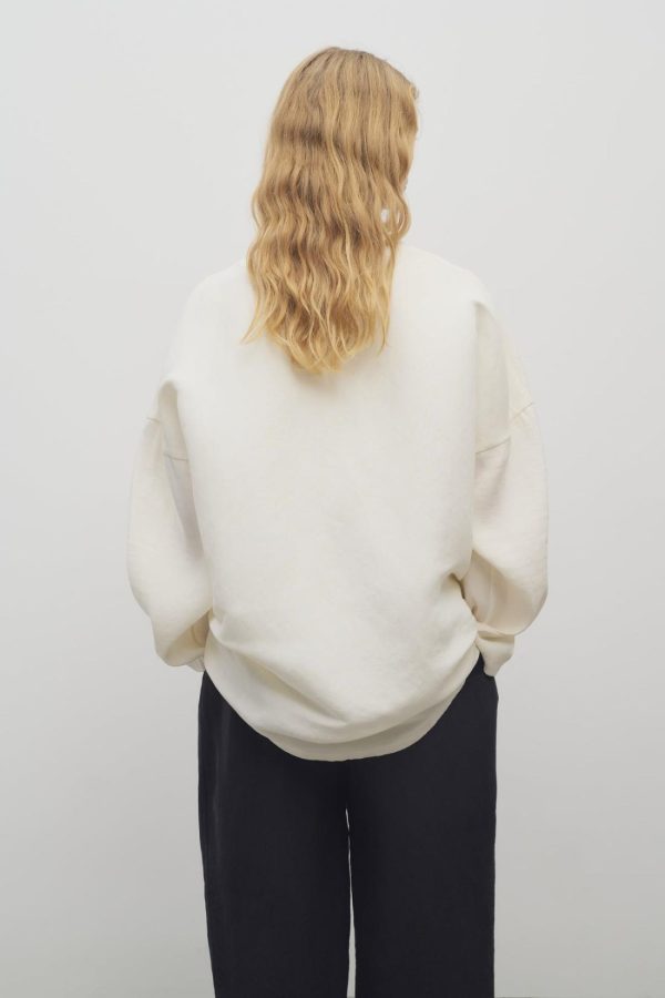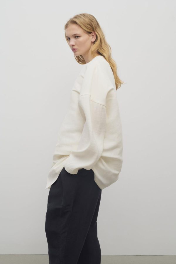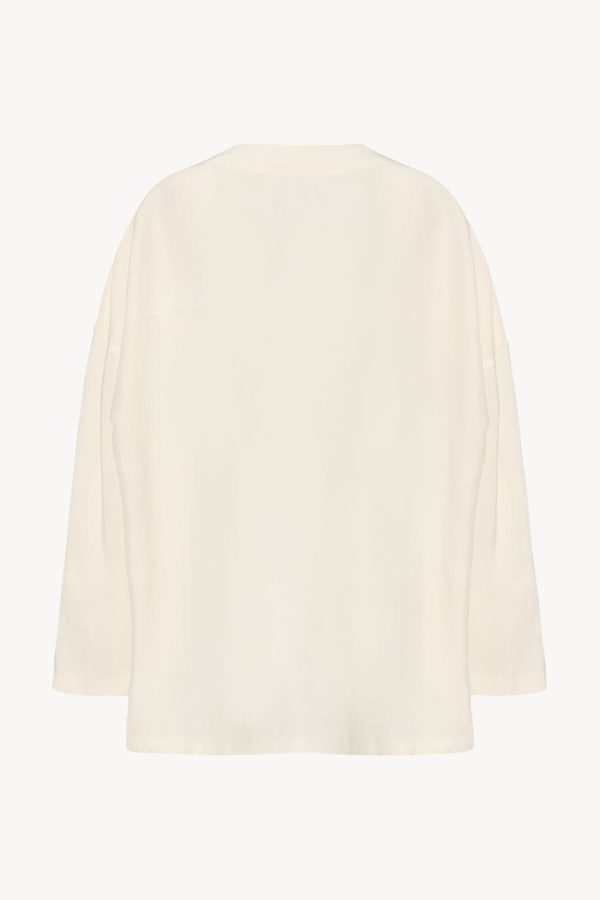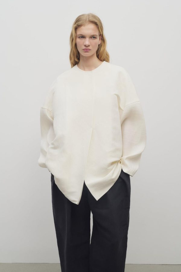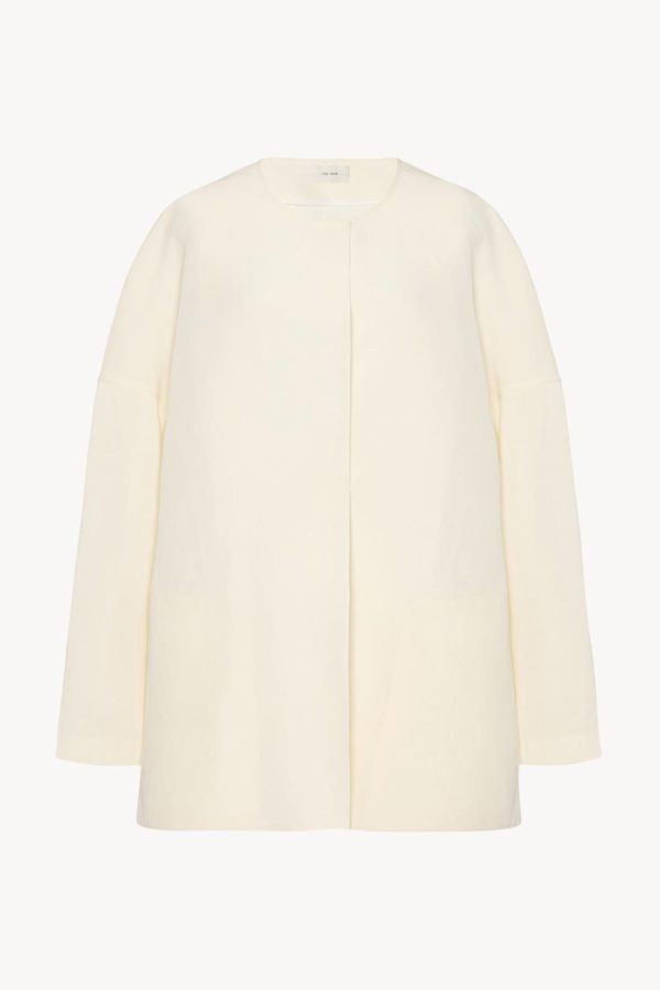 Oversized hand-crafted jacket in natural silk shantung with dropped shoulders, side seam pockets, and concealed hook and eye closure.