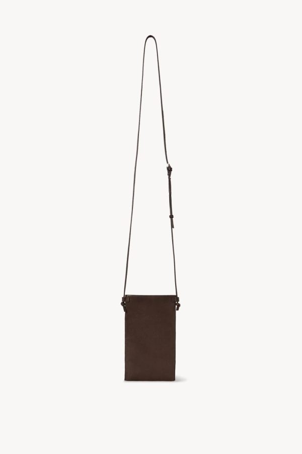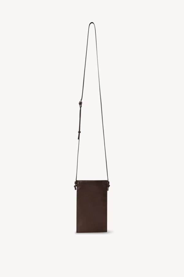 Minimal pocket pouch in buttery lambskin leather with open top and slim, adjustable strap.