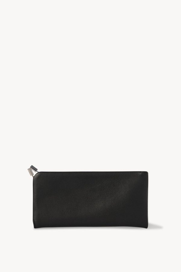 Minimal sunglasses case in buttery lambskin leather with top zipper closure and single interior pocket.