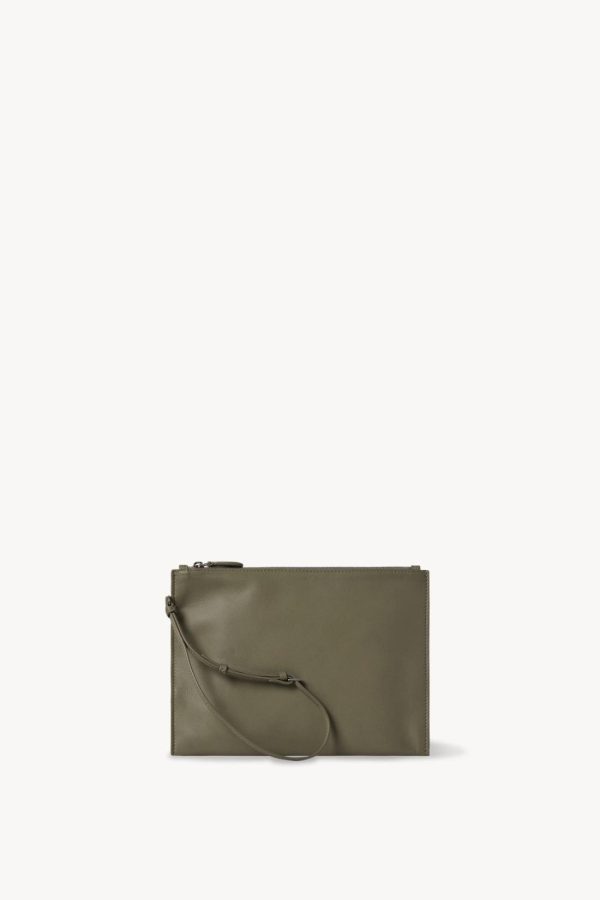 Minimal wristlet in buttery lambskin leather with thin leather loop and top zipper closure.