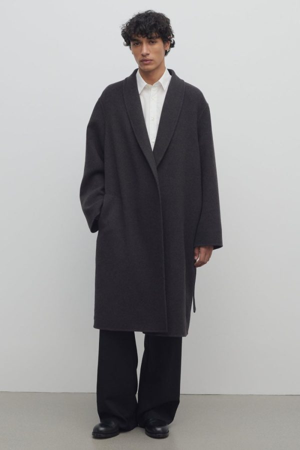The Row Outerwear | Hugh Coat In Cashmere Charcoal Grey Melange Men