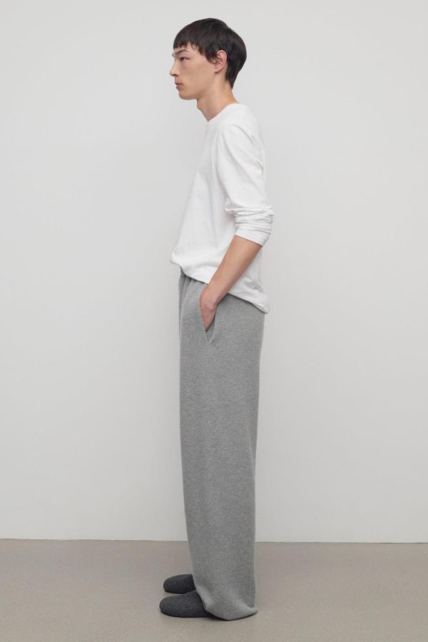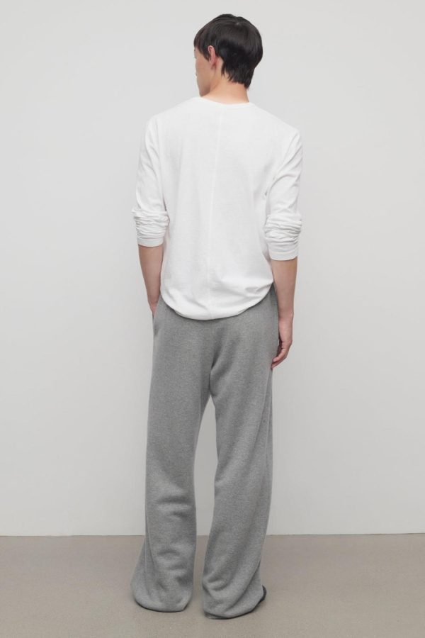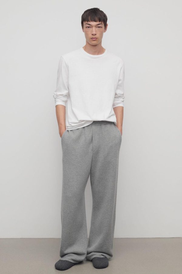Relaxed pull-on pant in ultrafine cashmere with straight leg, side seam pockets, and topstitched elastic waistband.