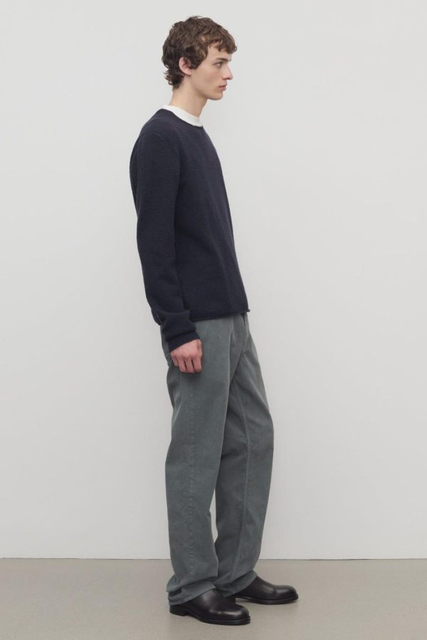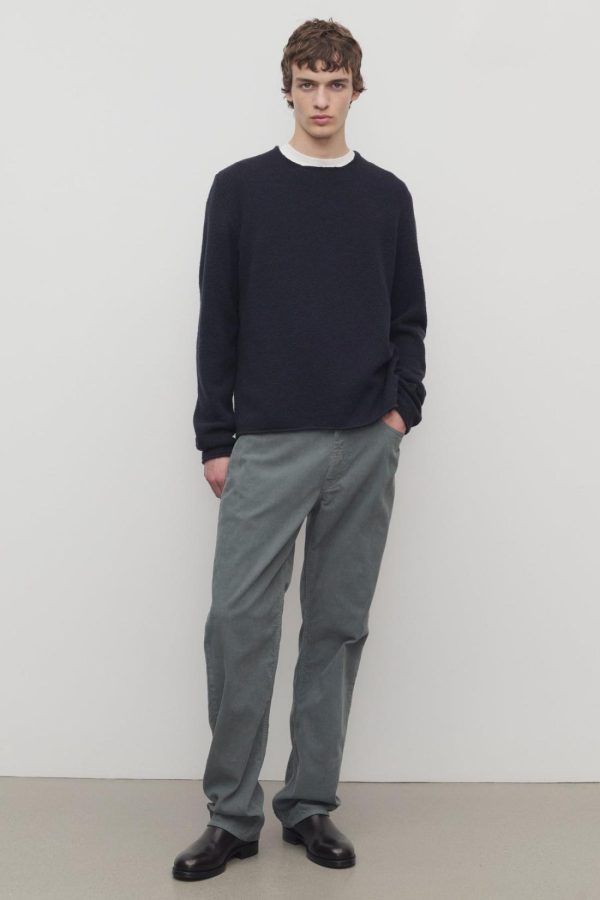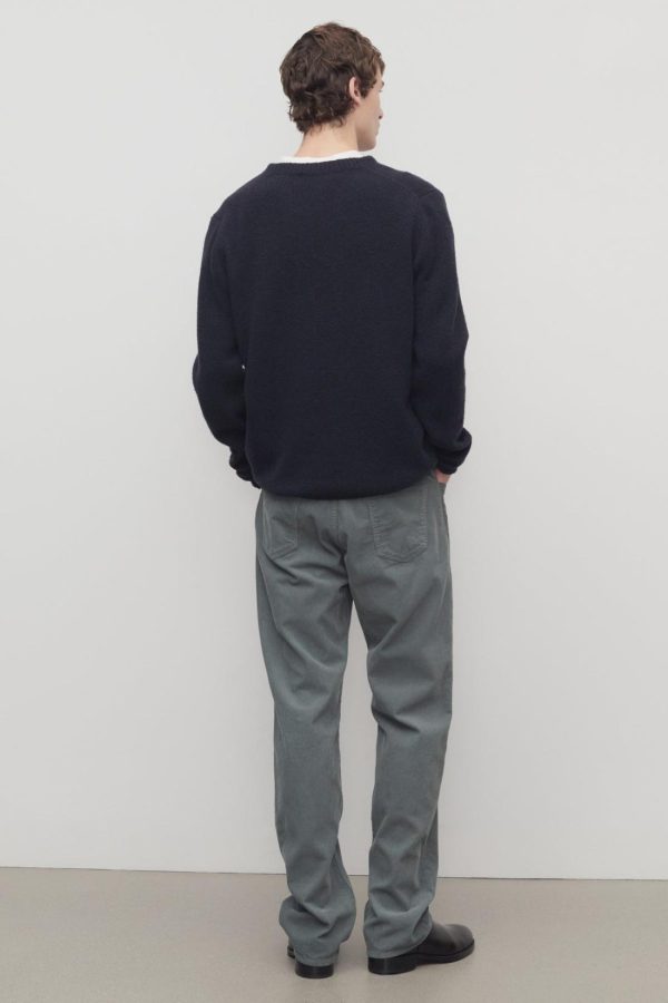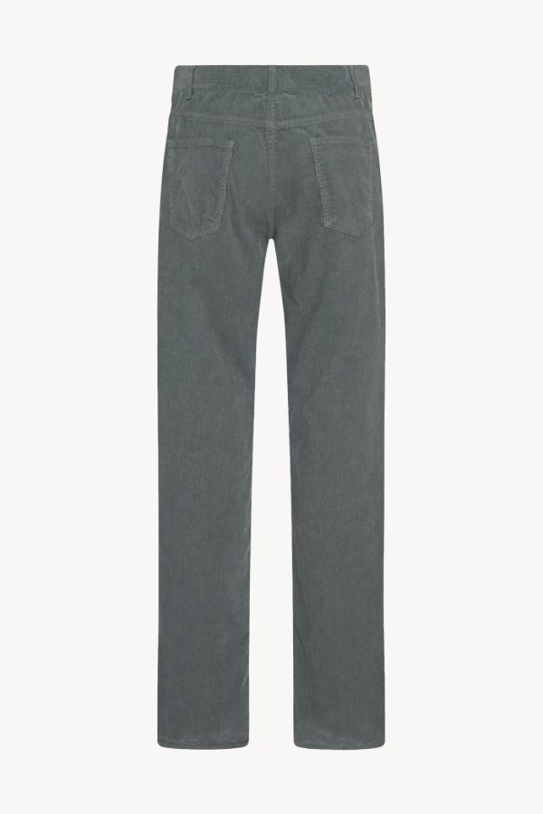 Relaxed mid-rise pant in Japanese cotton corduroy with straight leg, tonal topstitching, and classic 5-pocket construction.