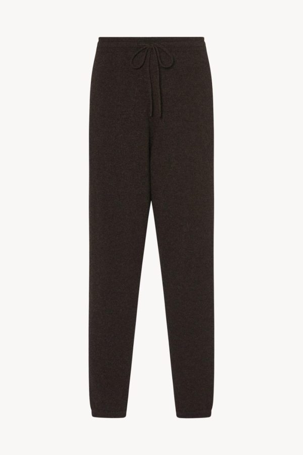 Mid-rise jogger pant in soft cashmere with slightly tapered leg and drawstring waist.