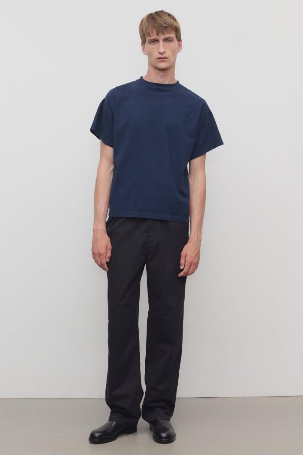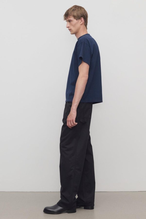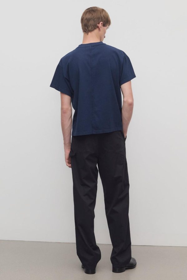 Mid-rise cargo pant in cotton and cashmere gabardine with straight leg, painter’s loop detail, and side seam pockets.