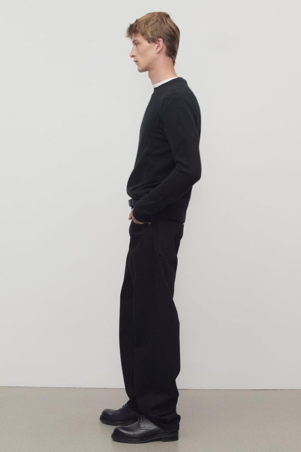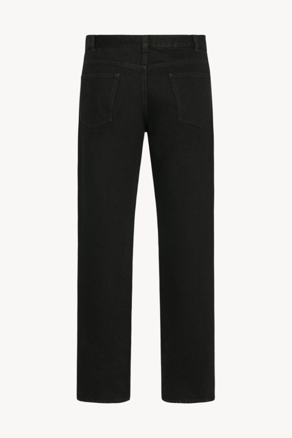 High-rise jean in mercerized cotton denim with straight leg, tonal topstitching, and classic 5-pocket construction.