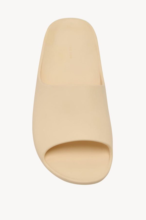 Smoothly curved slide sandal in lightweight rubber with contoured footbed and seamless construction.