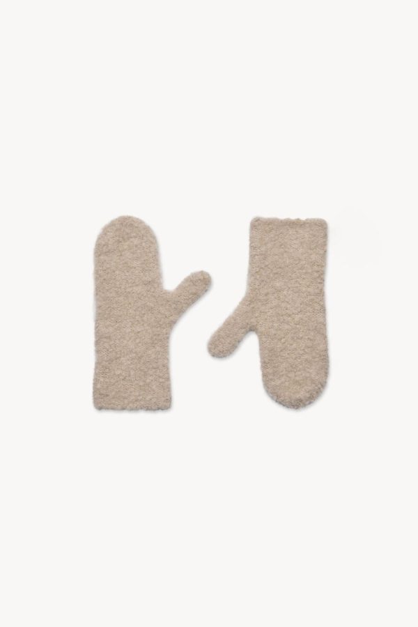 Classic knit mittens in textured alpaca and cashmere bouclé with clean edge finish.