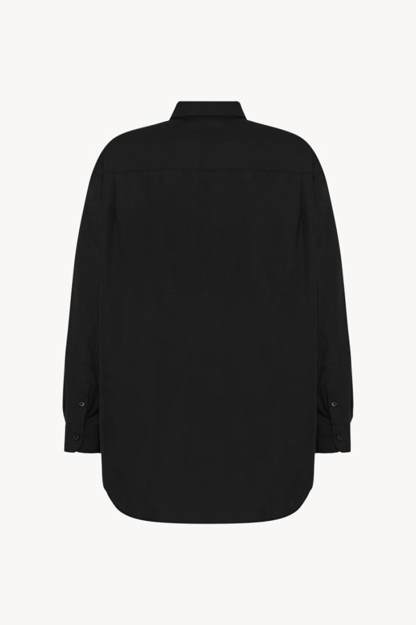Classic oversized shirt in washed cotton poplin with pointed collar, curved hem and triangle side seams.