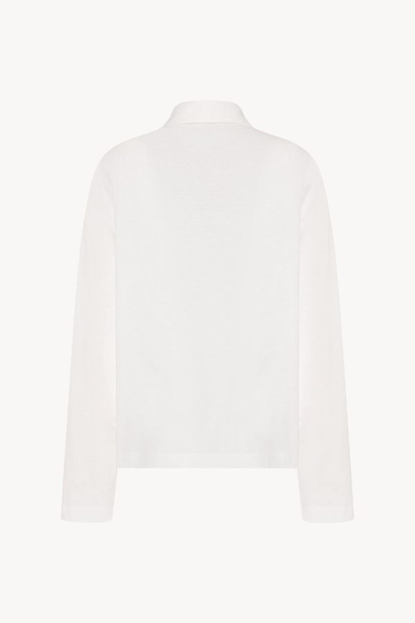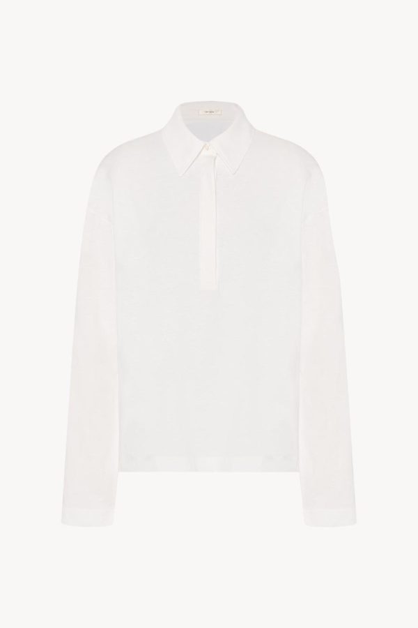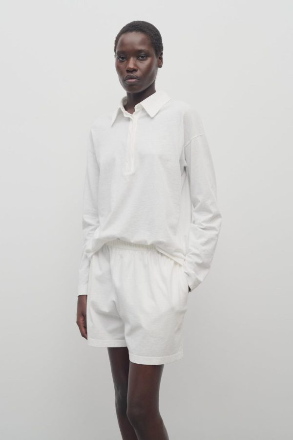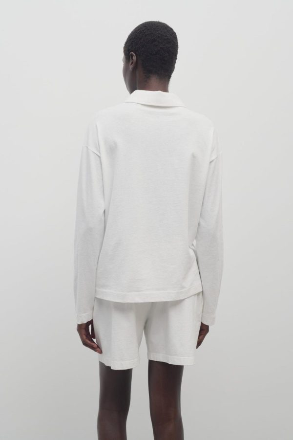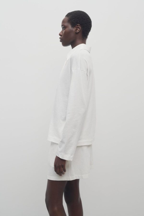 Oversized polo top in organic cotton jersey with ribbed collar and concealed front button placket.