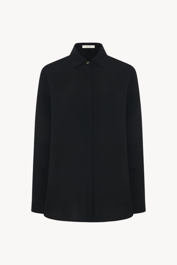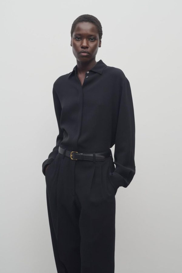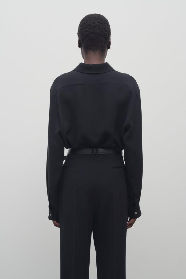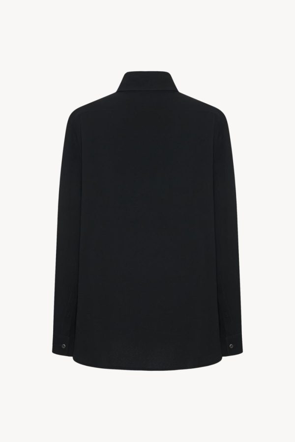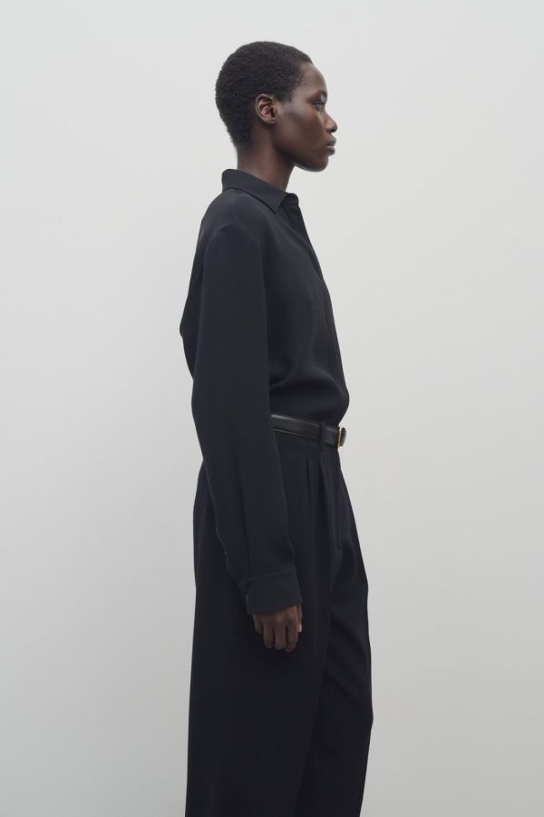 Relaxed button-up shirt in fluid silk crepe with slim back yoke and concealed front button placket.