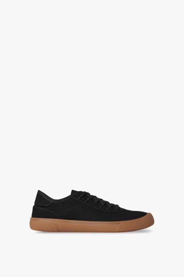 Low-top sneaker in washed canvas with tonal laces and textured rubber sole.