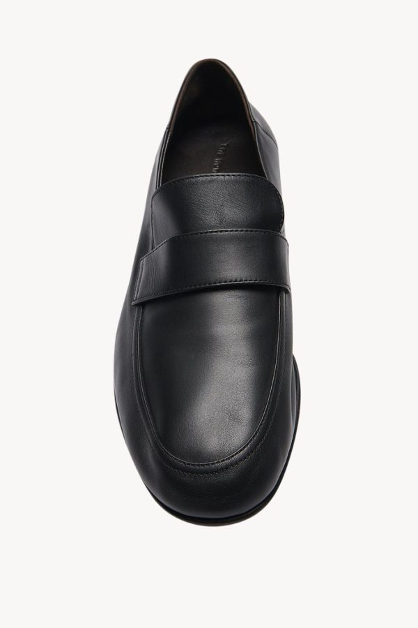 Classic slip-on loafer in matte calfskin leather with leather sole.