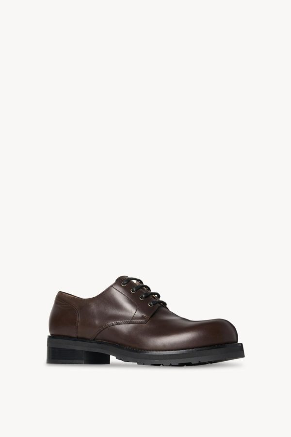 The Row Shoes | Derby Lug Sole Shoe In Leather Lacquer Brown Men