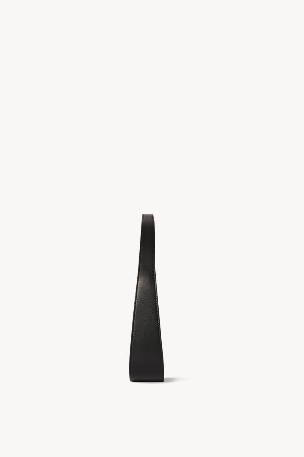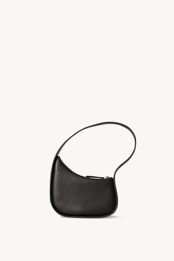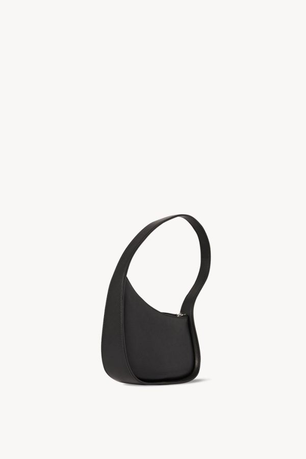 Ergonomic, semi-rigid bag in smooth calfskin leather with flat shoulder strap and curved zipper closure.