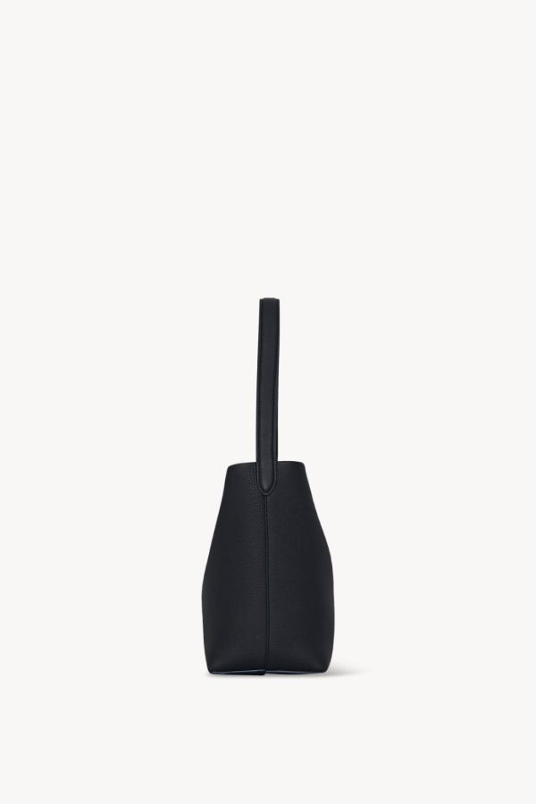 Classic tote bag in textured calfskin leather with interior toggle closure and flat handle.