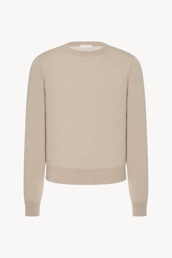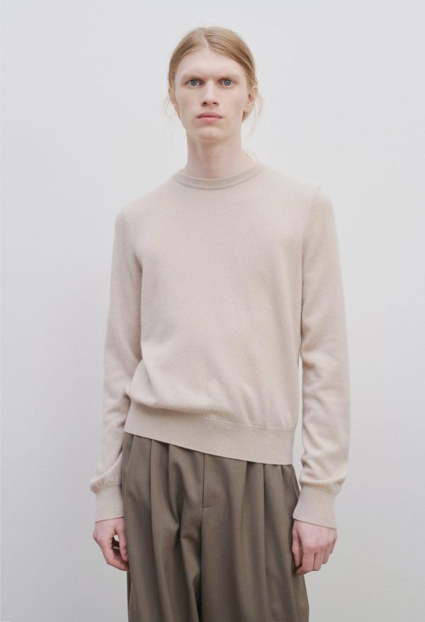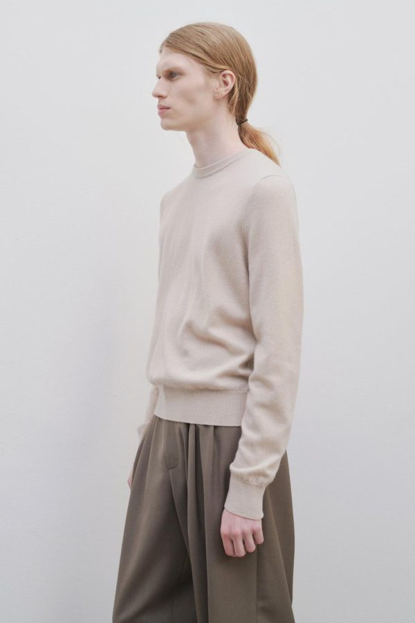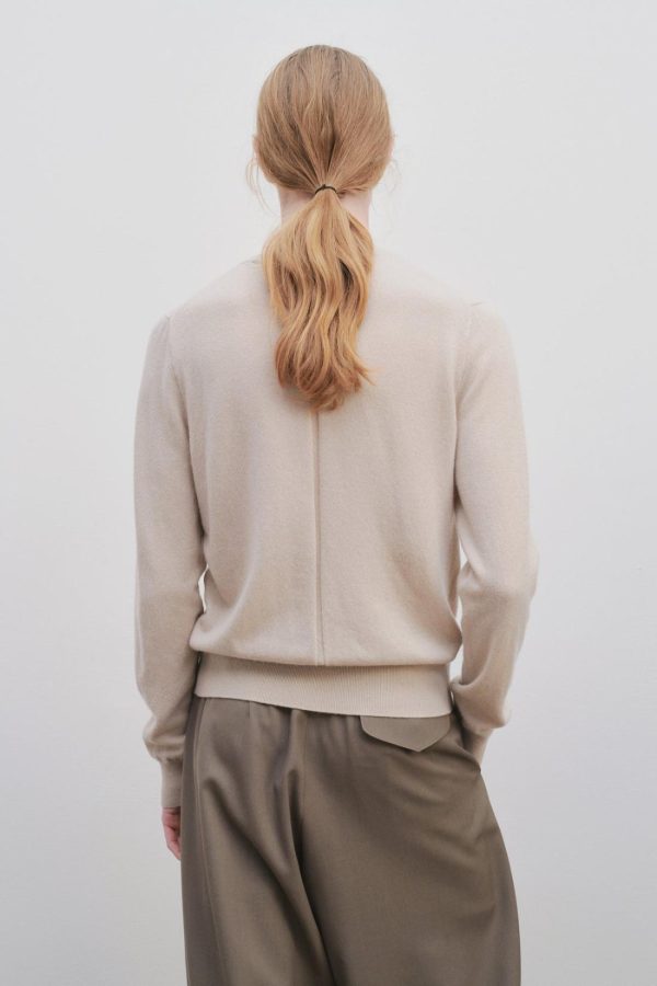 Slim-fit crewneck sweater in two-ply cashmere with ribbed neckline, cuffs and hem, and signature center back detail.