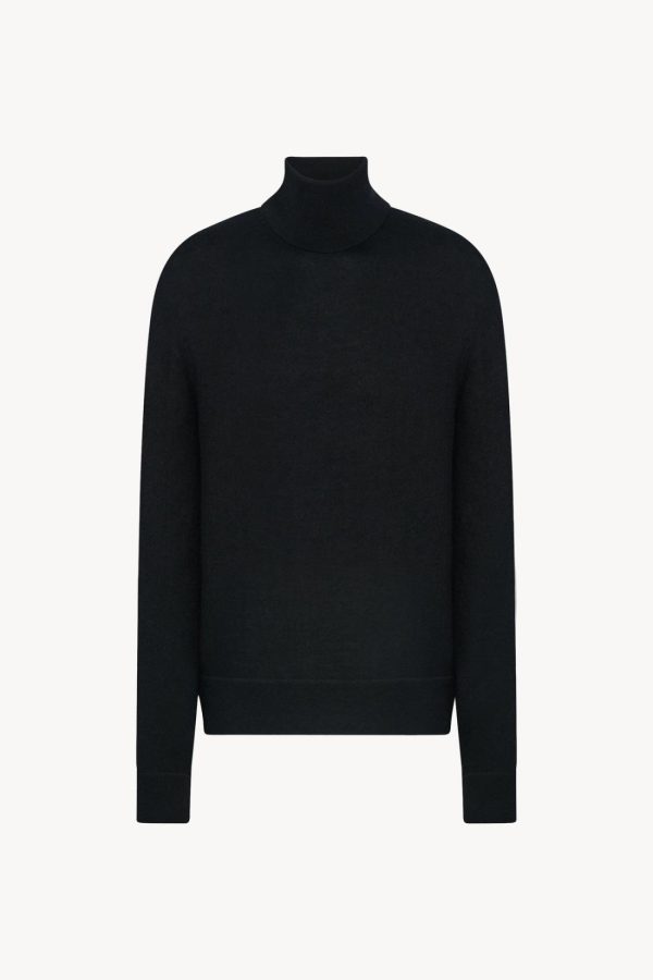 Long-sleeved turtleneck sweater in ultrafine cashmere jersey with relaxed fit and ribbed collar, cuffs, and hem.