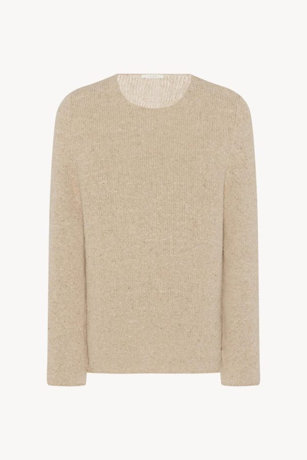 Minimal crewneck sweater in textured midweight knit with clean hem finish and relaxed fit.