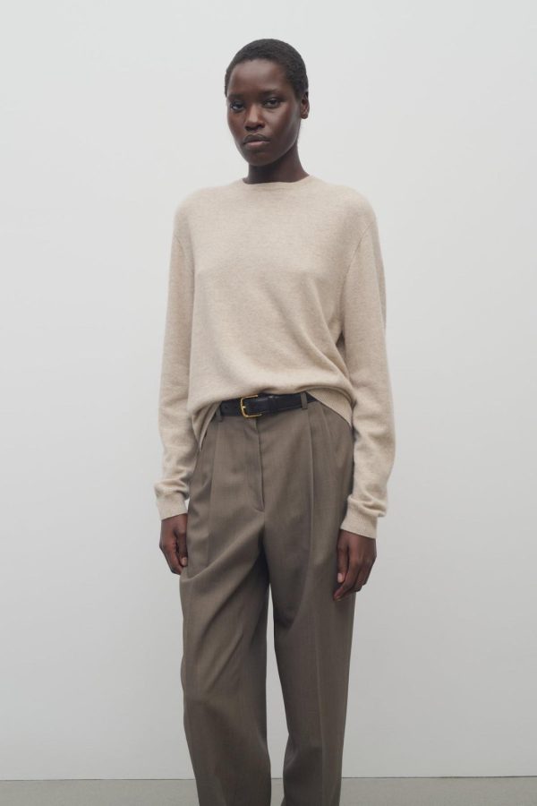 Classic crewneck sweater in soft lightweight cashmere with relaxed fit and ribbed neckline, cuffs, and hem.