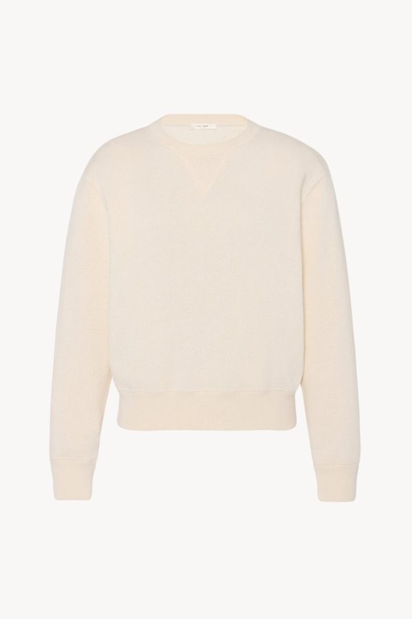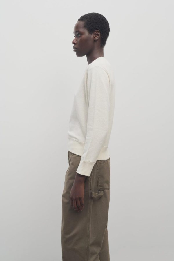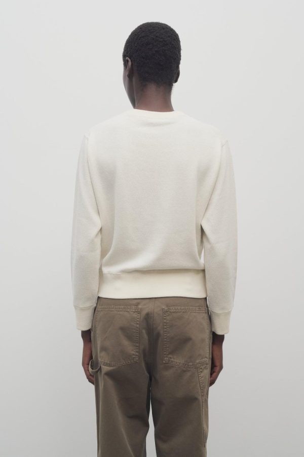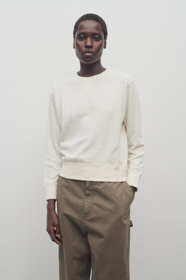 Crewneck sweatshirt in stonewashed silk jersey with regular fit, stitched v-notch detail and ribbed neckline, cuffs, and hem.