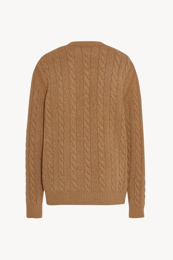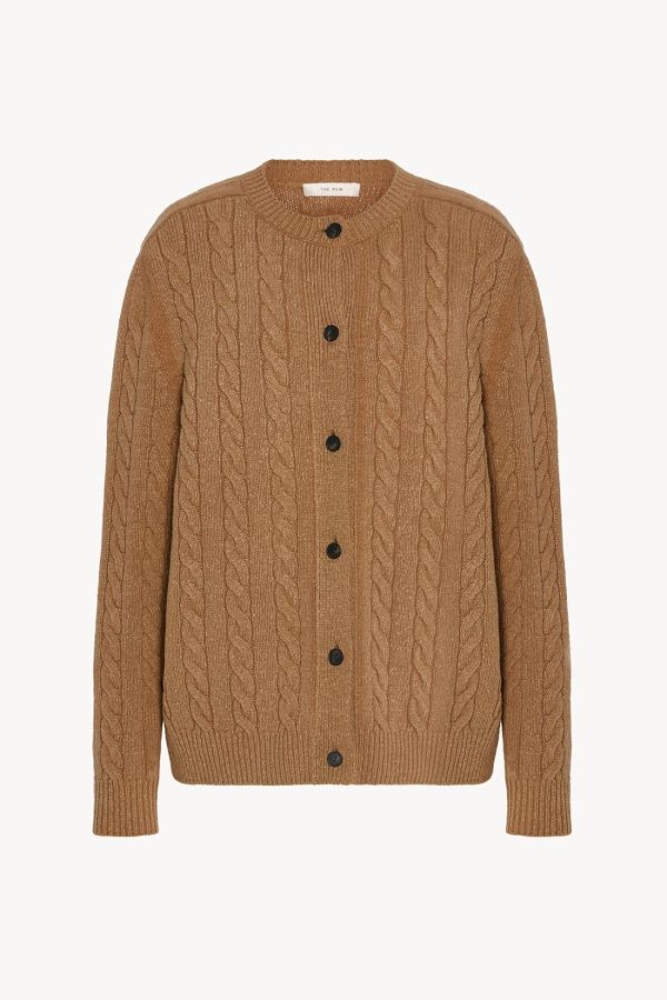 Classic cable-knit cardigan in textured wool with relaxed fit, front button closure, and ribbed neckline cuffs, and hem.
