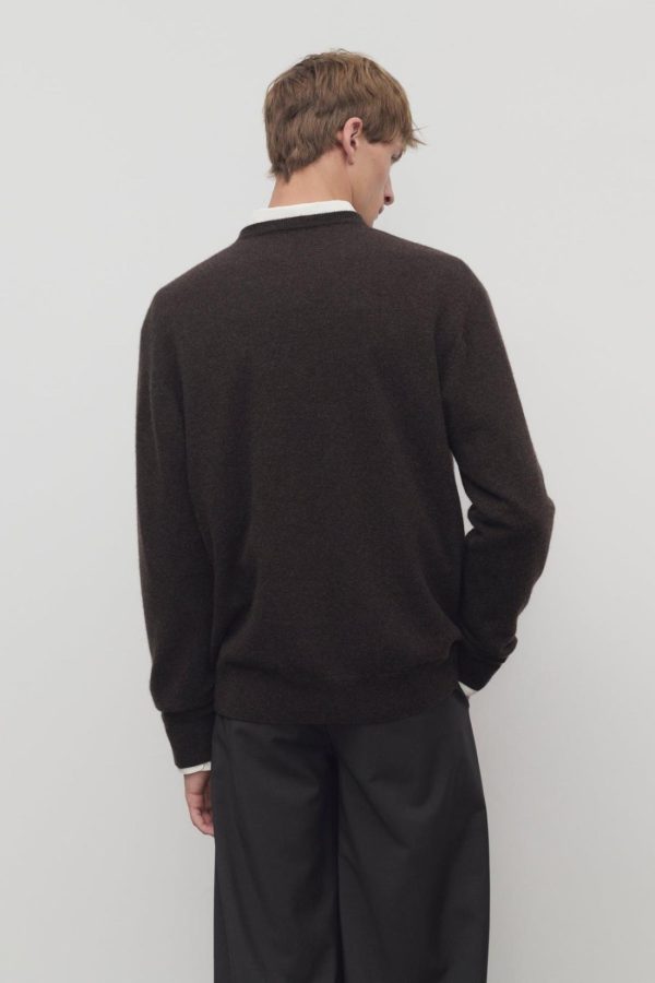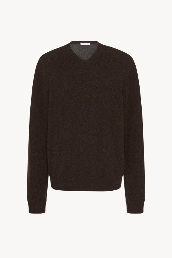 Classic v-neck sweater in soft cashmere with relaxed fit and ribbed neckline, cuffs, and hem.