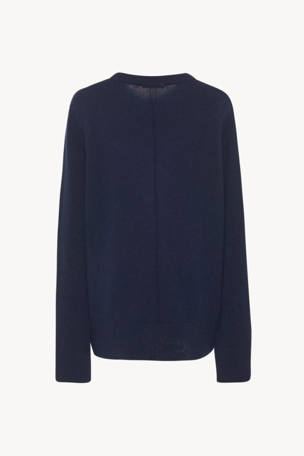 The Row Essentials crewneck sweater in midweight cashmere and wool knit with ribbed neckline, cuffs and hem.