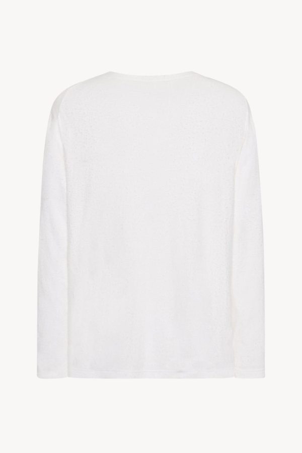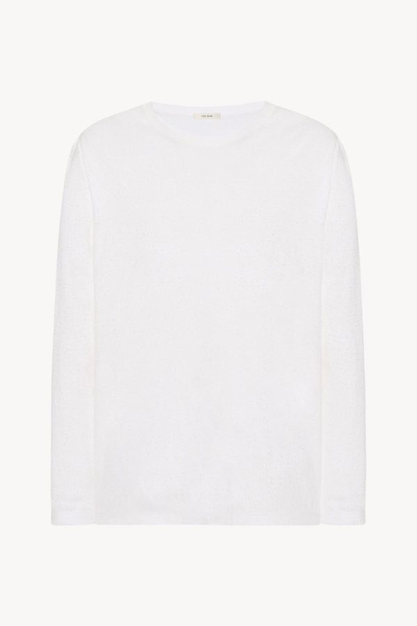 Long-sleeved crewneck top in softly brushed fine cotton with ribbed neckline and relaxed fit.