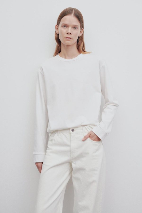 Oversized long-sleeved t-shirt in soft organic Pima cotton with dropped shoulder and wide crew neckline.