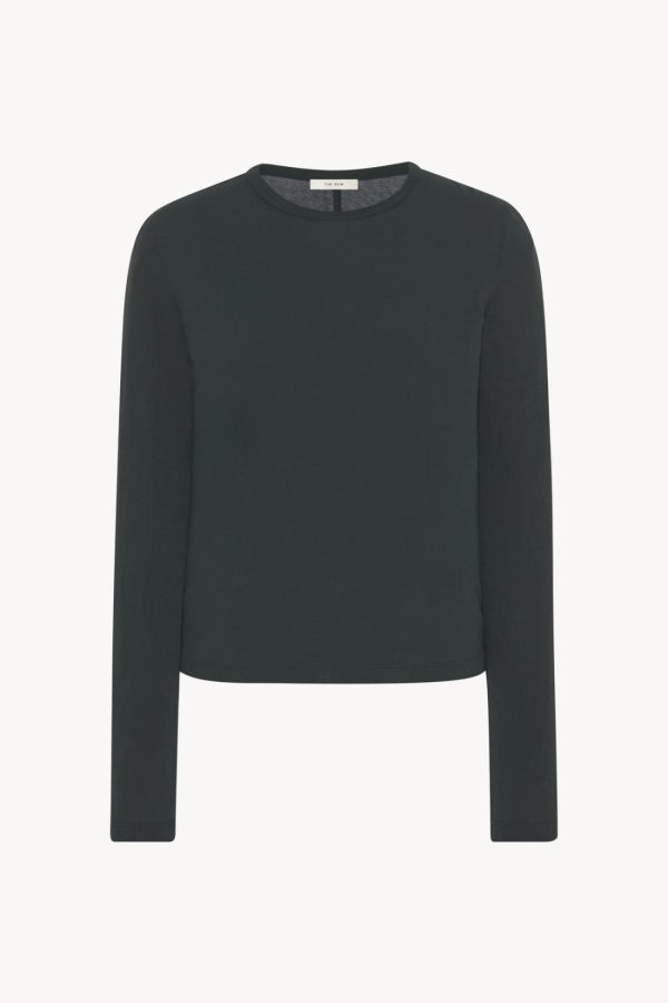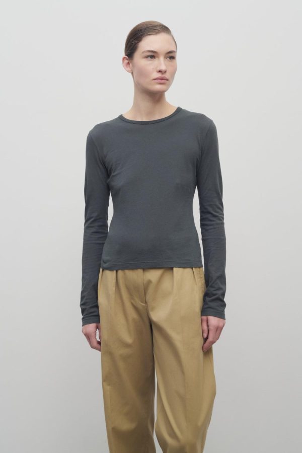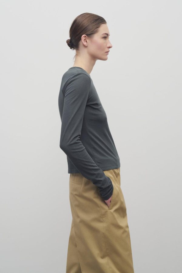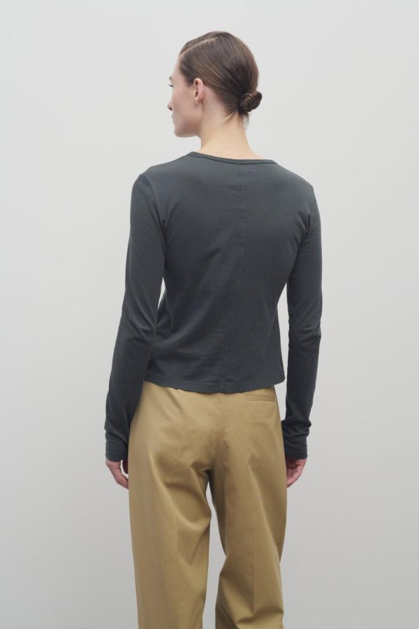 Light long-sleeved top in organic cotton jersey with slim fit, ribbed neckline, and signature center back detail.