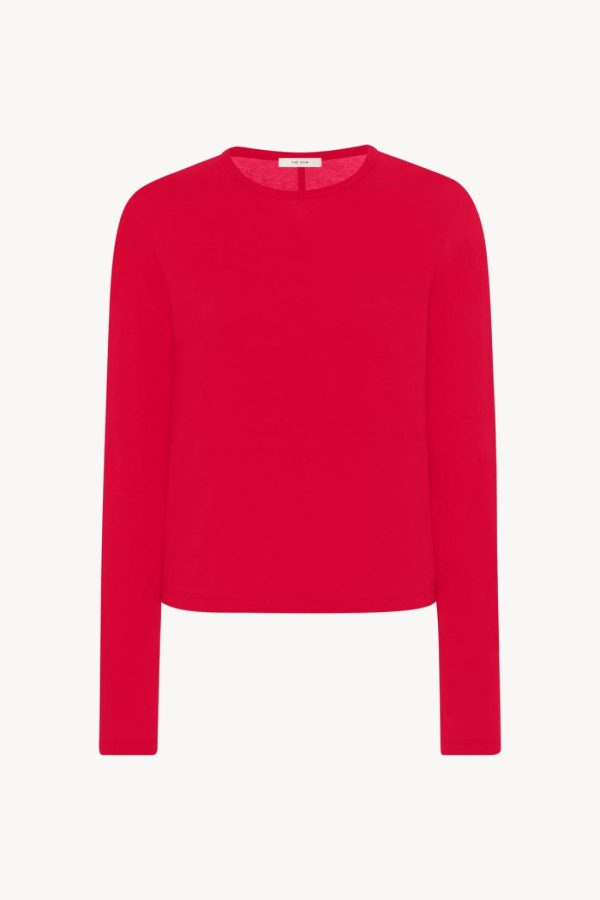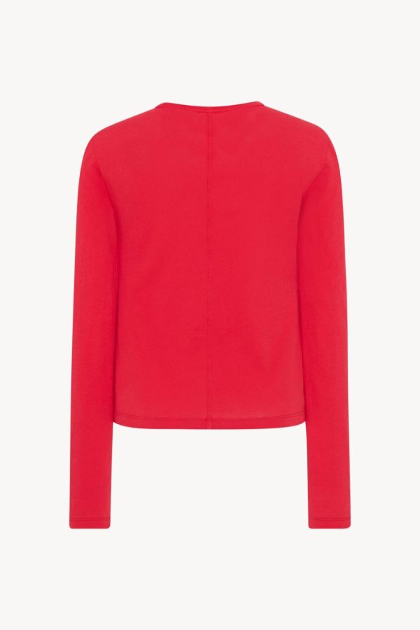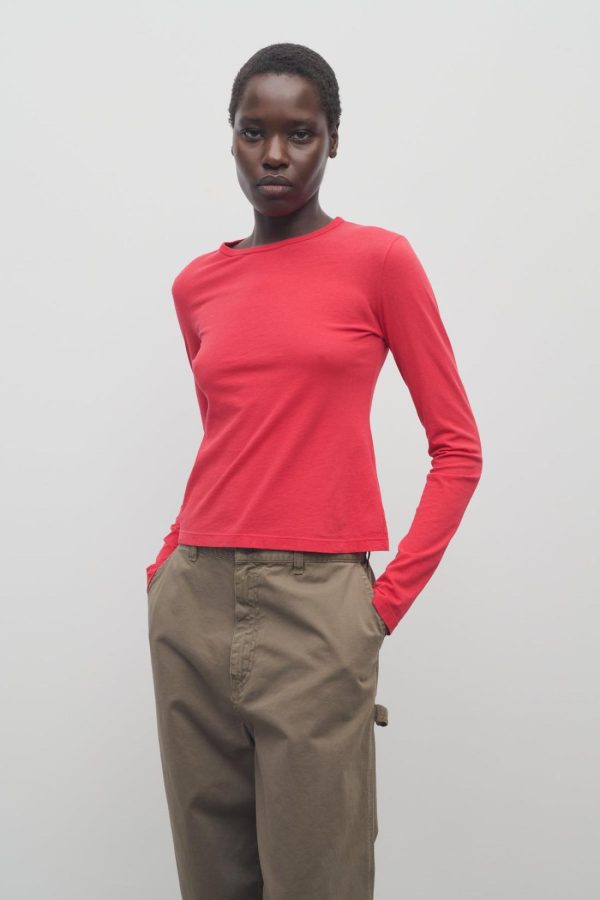 Light long-sleeved top in organic cotton jersey with slim fit, ribbed neckline, and signature center back detail.