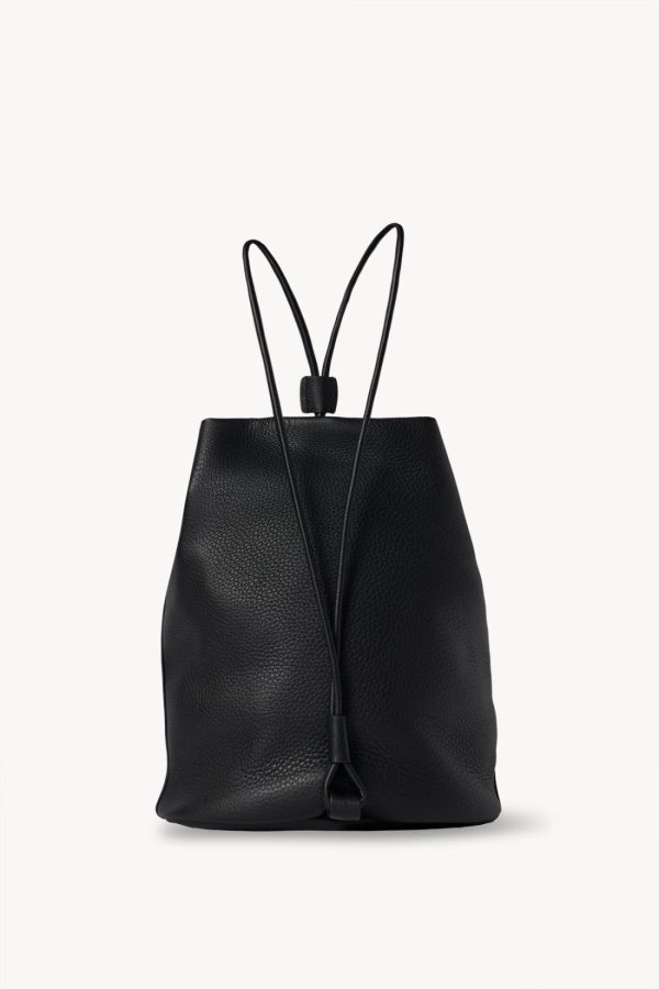 Minimal backpack in durable deerskin leather with drawstring closure and hand-crafted shoulder straps.