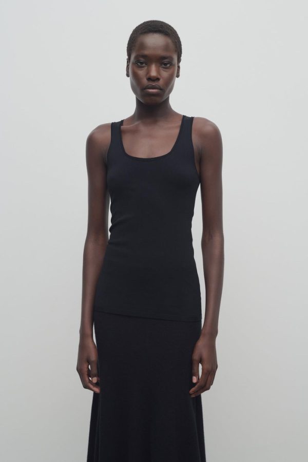 Seamless tank top in technical stretch jersey with rounded neckline and slim fit.